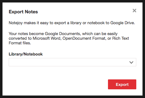 We want to give you peace of mind as you use Notejoy. That's why we offer the ability to export all your notes to Google Drive, ensuring that as you use Notejoy for your team, you always have the option to take your notes out whenever you'd like. More details here.
